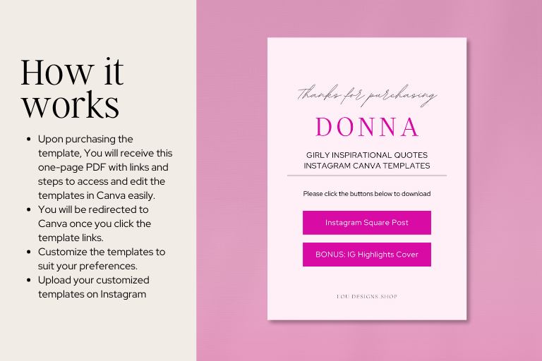 🌸 Upon purchasing the template, You will receive a one-page PDF with links and steps to access and edit the templates in Canva easily.