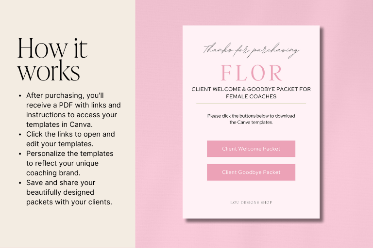 - After purchasing, you'll receive a PDF with links and instructions to access your templates in Canva.